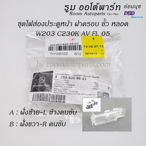 A2038200801 ชุดไฟส่องประตูหน้า ฝาครอบ ขั้ว หลอด งานแท้ Benz W203 C230K AV FL 05 ท่านใดฝาครอบกรอบแตก ช่างงัดหัก หลอดขาด ติดๆ ดับๆ เปลี่ยนจบยกชุด ให้รถดูสวยสมบูรณ์ แยกขายฝั่งซ้าย-ฝั่งขวา
